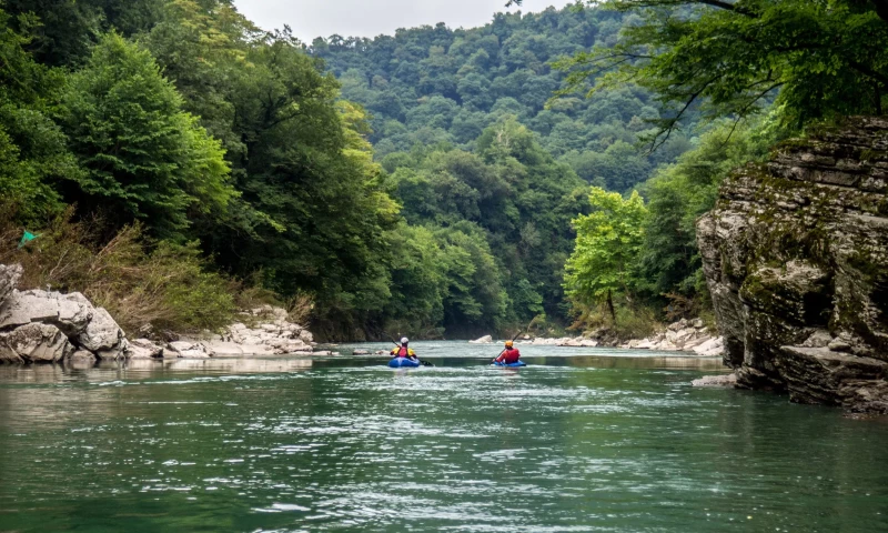 Rafting is carried out, accompanied by a qualified instructor, along safe sections of the river.